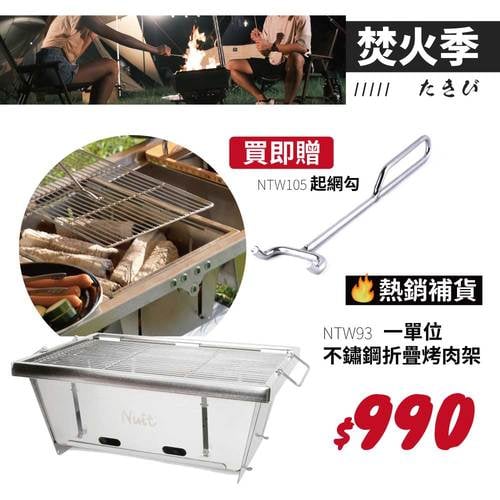 【焚火季-買就贈起網勾*1】NTW93 努特NUIT 一單位不鏽鋼摺疊烤肉架 適用NTT91 NTT93 NTT94 NTT95 IGT配件 折疊烤肉架 烤網