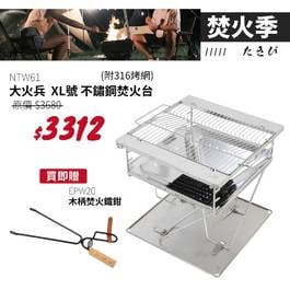 【焚火季-買就贈焚火鐵鉗*1】NTW61 努特NUIT 大火兵XL 不鏽鋼焚火台烤肉架-附烤網 316不鏽鋼烤網 適合中秋烤肉搭配NTW102或荷蘭鍋 鑄鐵鍋燒柴爐育空爐使用