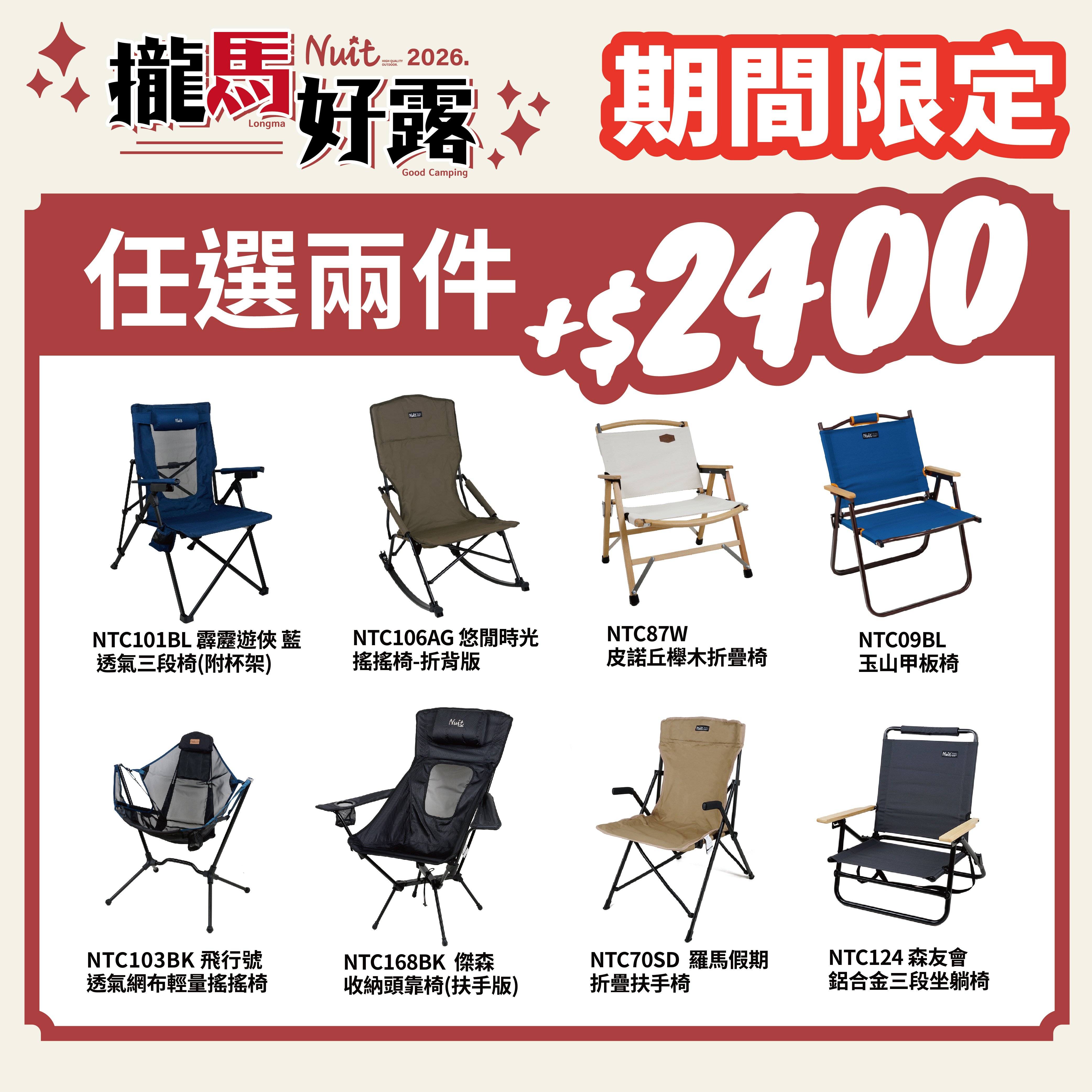 【2026攏馬好露-指定品項兩入優惠$2400】努特NUIT 兩件任選任搭 露營椅